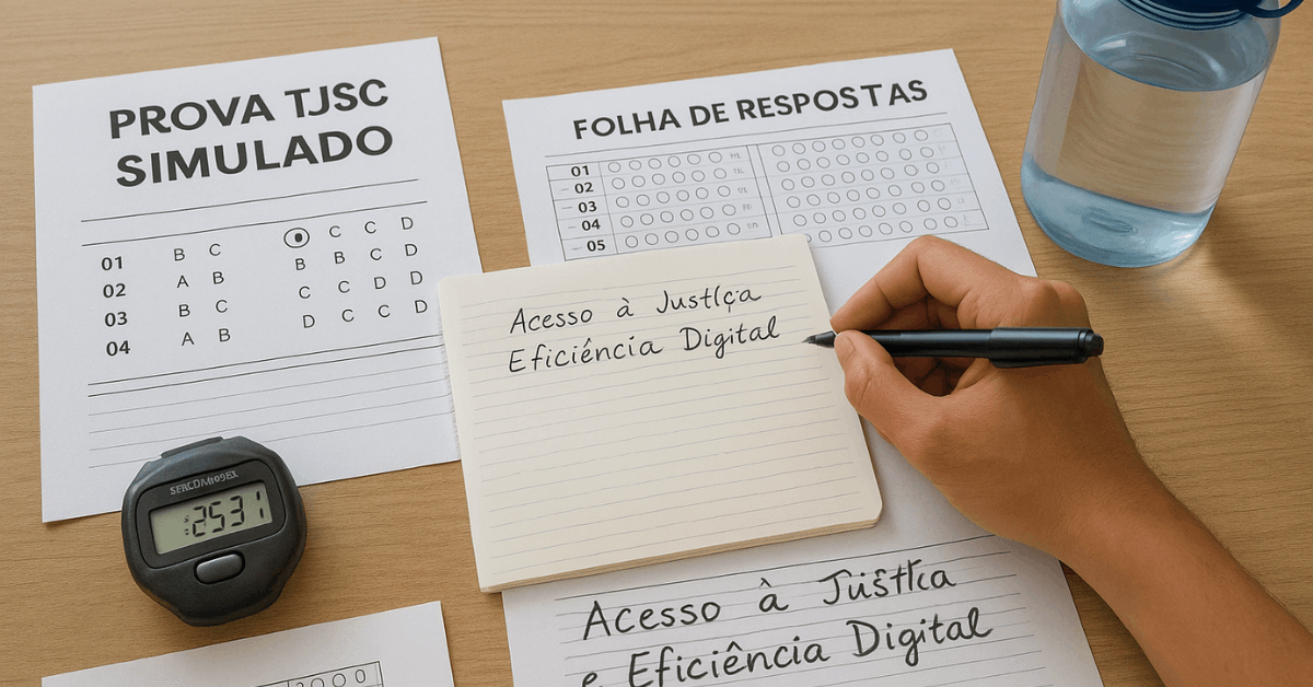 Comece hoje, acompanhe seu progresso semanalmente e transforme a prática consistente na nomeação que garante uma carreira estável e respeitada no Judiciário de Santa Catarina.